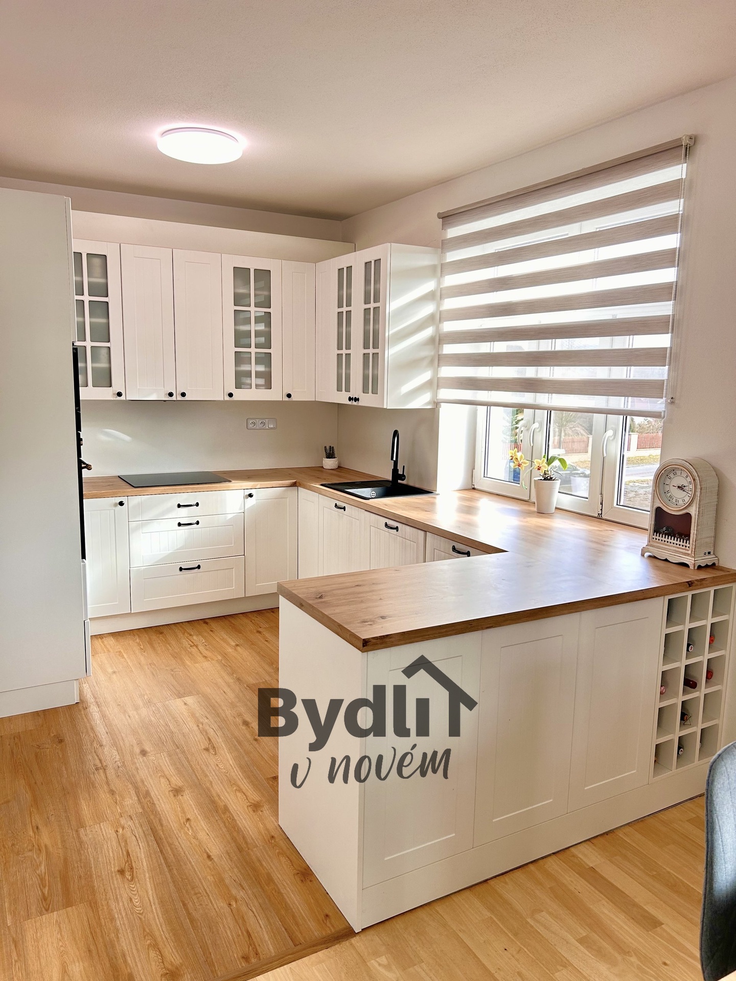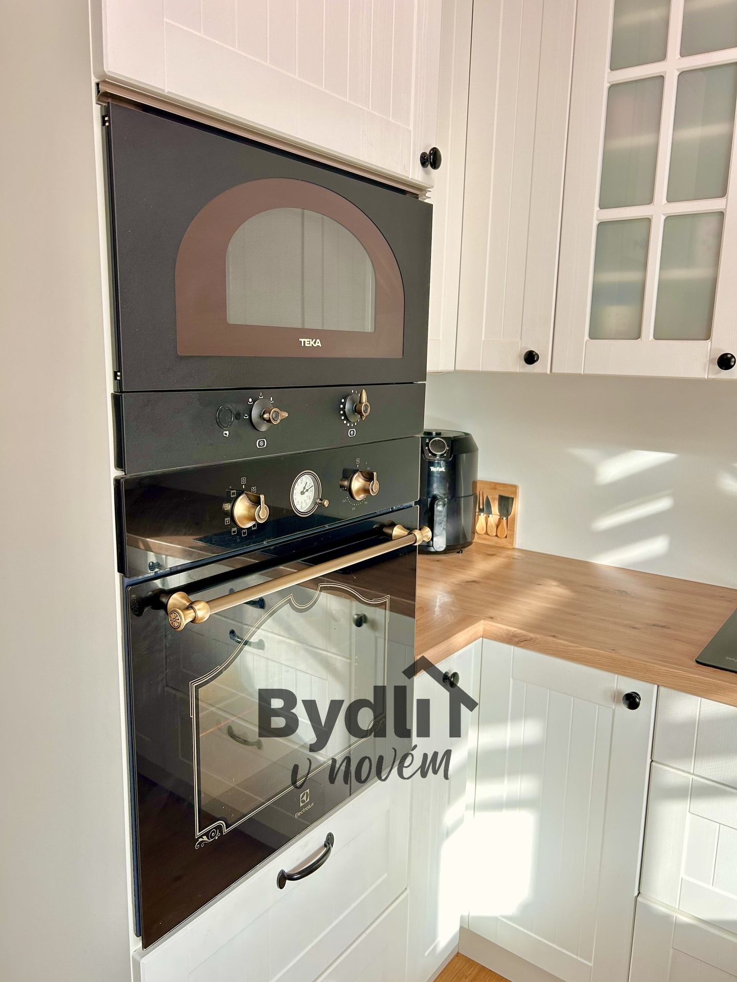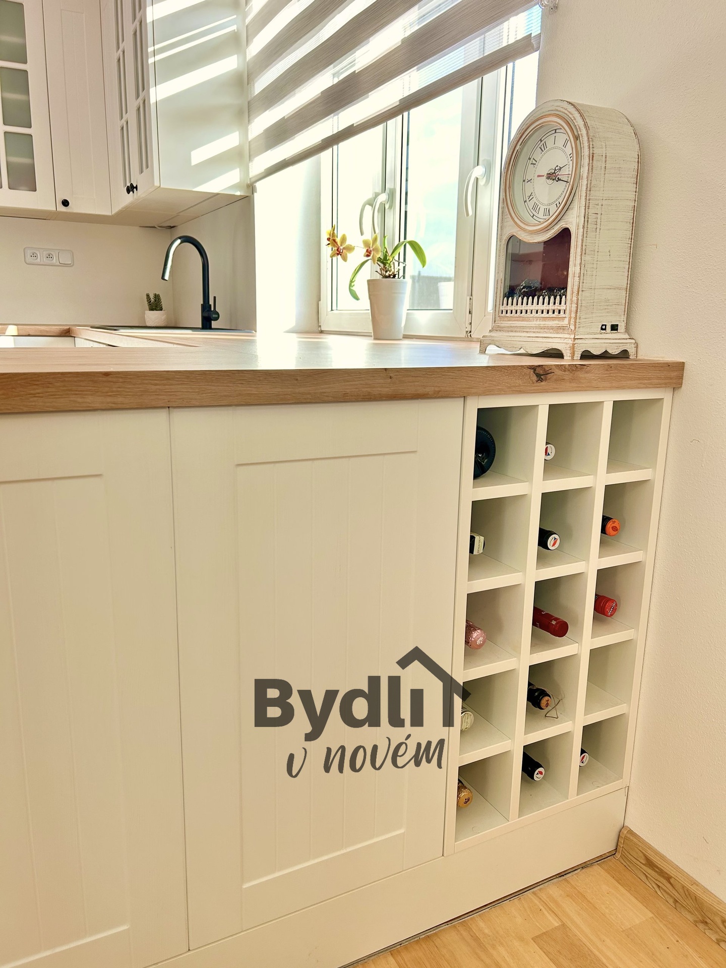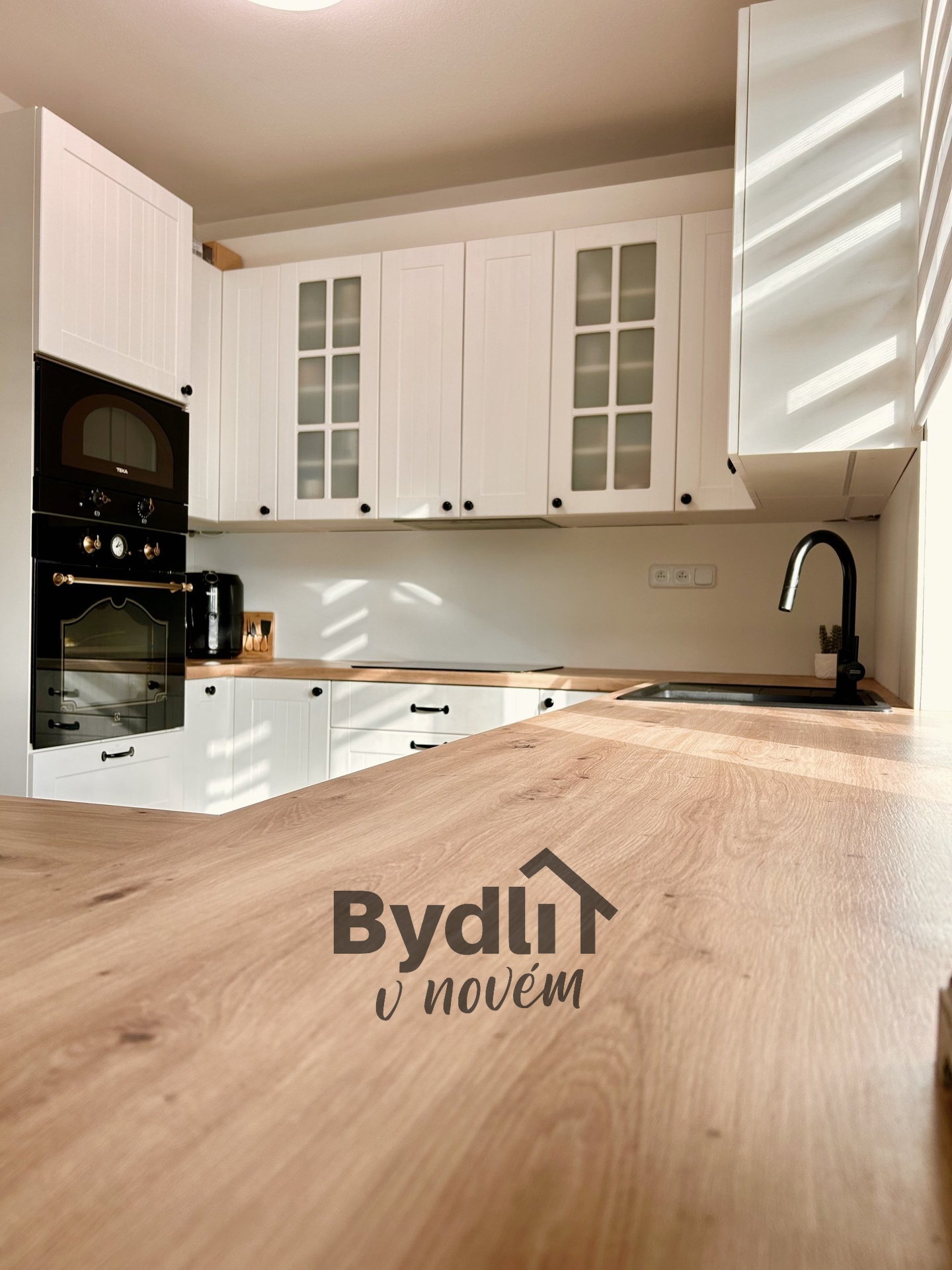 Kuchyně prošla kompletní rekonstrukcí a byla vyrobena na míru v provensálském stylu. Nabízí dostatek úložného prostoru, kvalitní materiály a estetiku, která zaujme na první pohled.