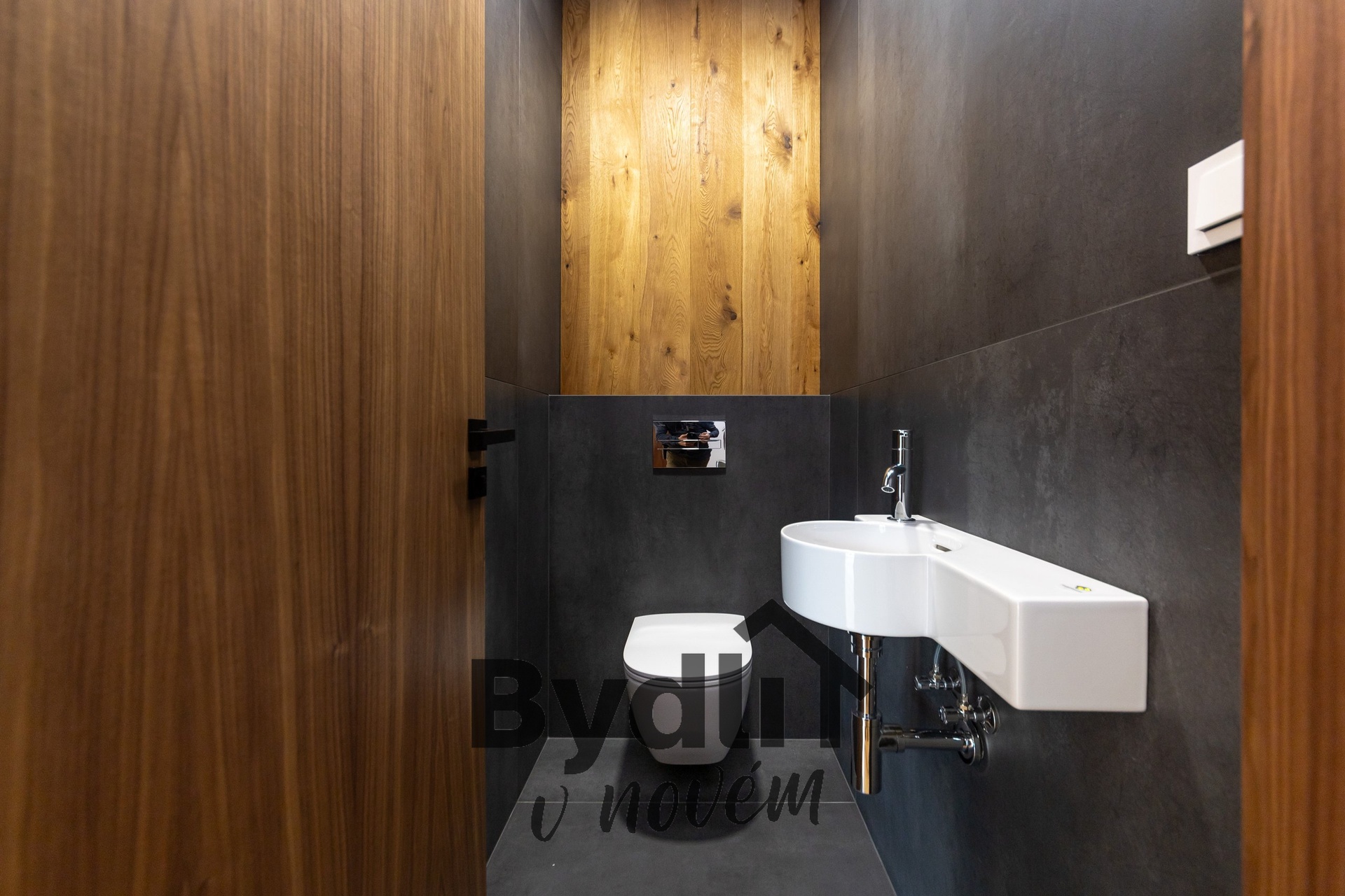 Nabídne garáž s přímým přístupem do technické místnosti nebo do domu, kde jsou v horním patře umístěny dvě obytné místnosti a koupelna, vybavena vanou, toaletou a sprchovým koutem. Promyšlené technologie zahrnují i ambientní ozvučení v koupelnách, velkoformátové obklady, systém na shoz prádla přímo do prádelny a centrální vysavač.