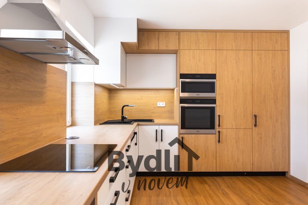 Moderní kuchyňský kout propojený s obývacím prostorem