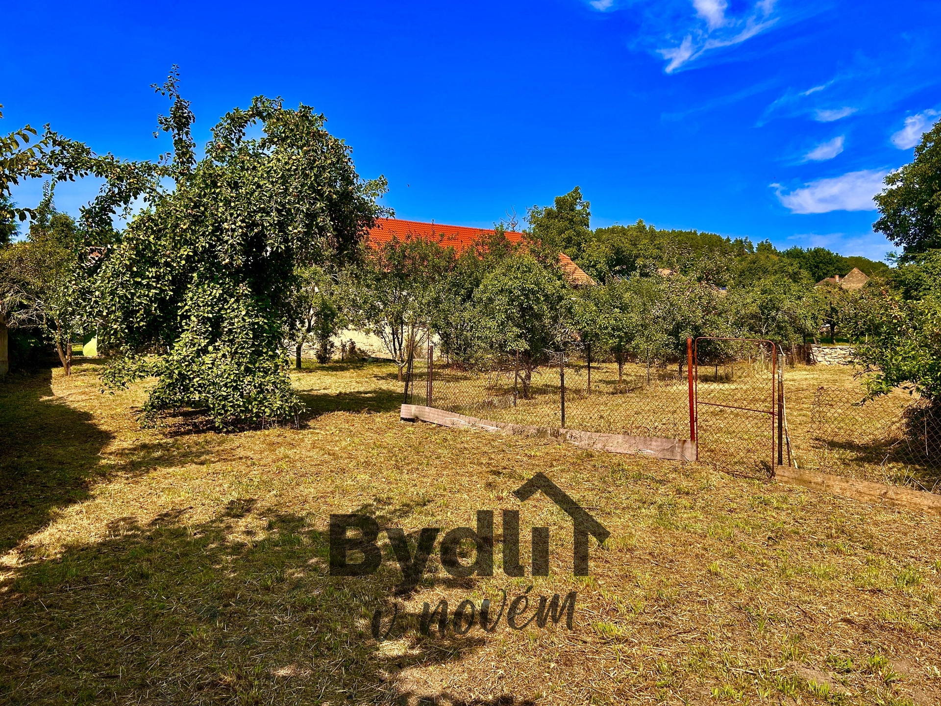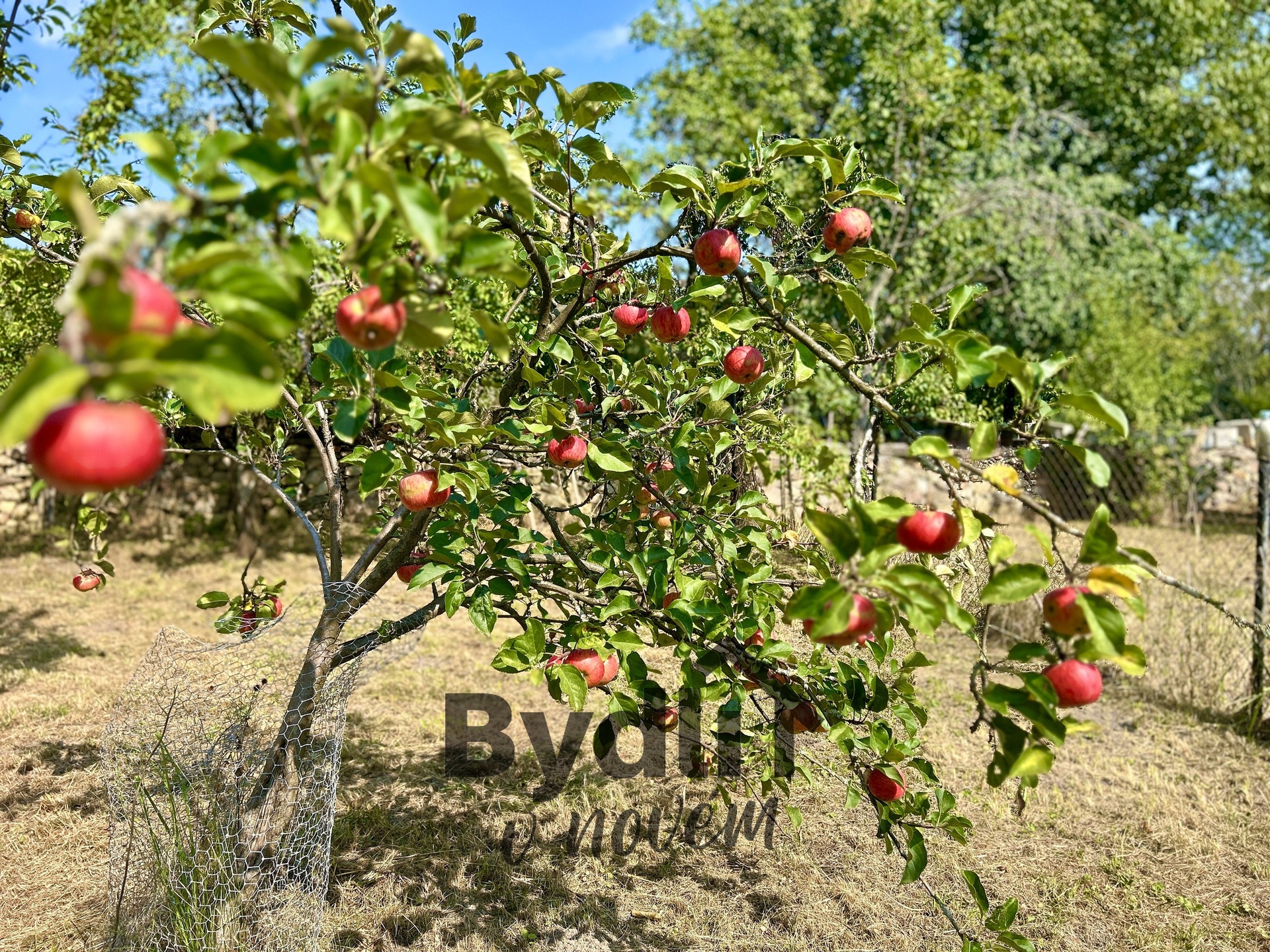 Součástí prodeje je také ovocný sad o ploše 1 137 m², kde rostou jabloně, švestky a další ovocné stromy.